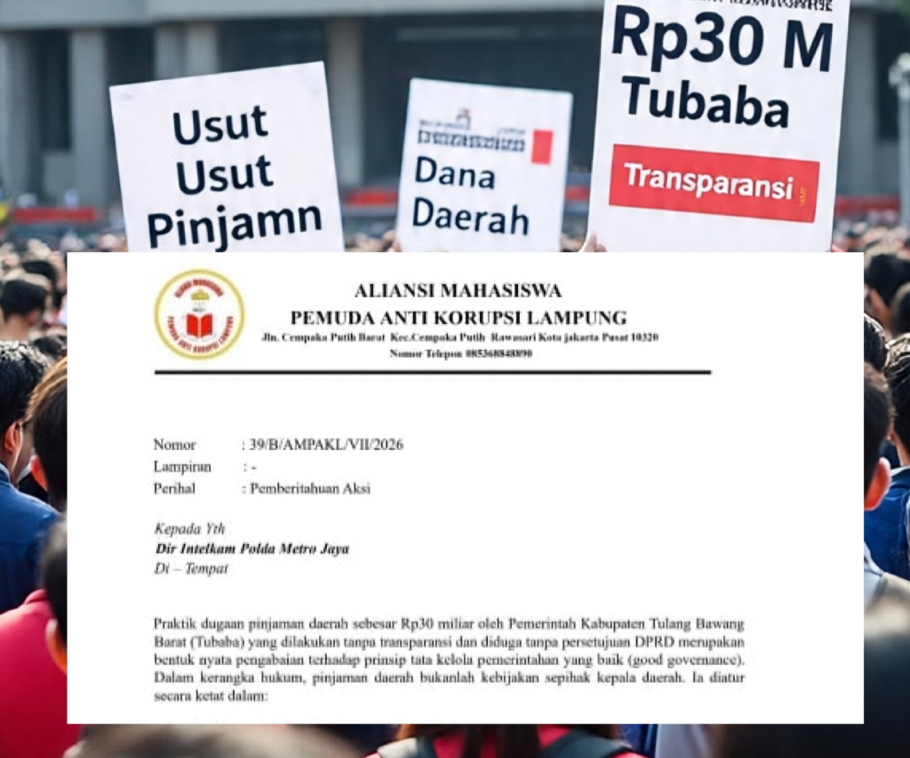 Aksi ini dilakukan sebagai respons atas dugaan pinjaman daerah sebesar Rp30 miliar oleh Pemerintah Kabupaten Tulang Bawang Barat (Tubaba) yang dinilai tidak transparan dan diduga tanpa persetujuan DPRD.